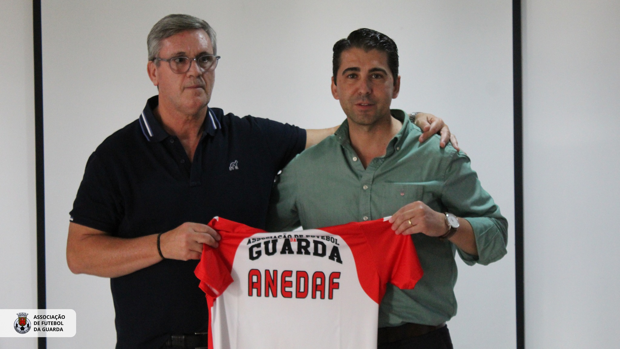 No encerramento, o Presidente da Direção da AF Guarda ofereceu uma camisola da Associação à ANEDAF, como gesto simbólico de reconhecimento e cooperação.